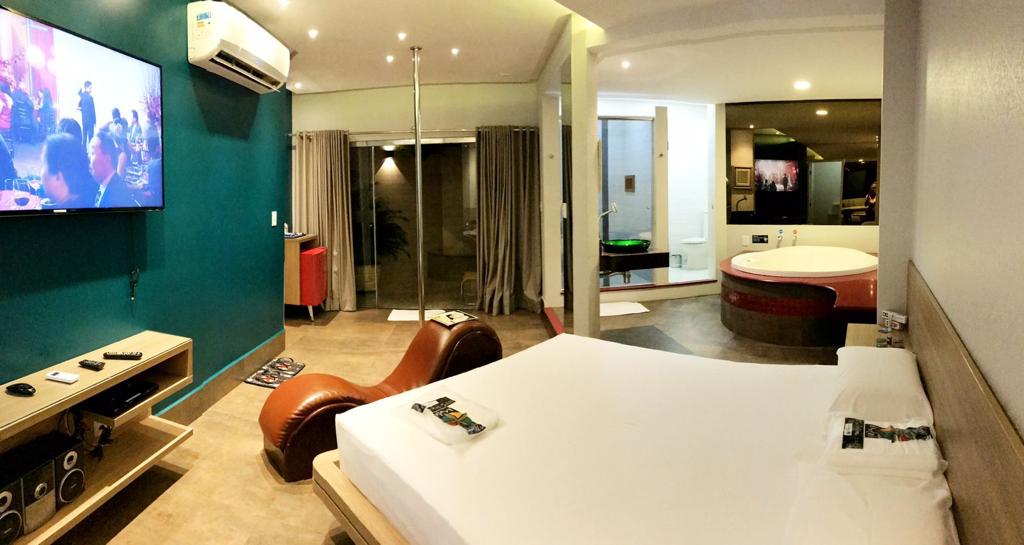 Suíte temática 50 tons de cinza, síte duplex, piscina, boate e jacuzzi.
